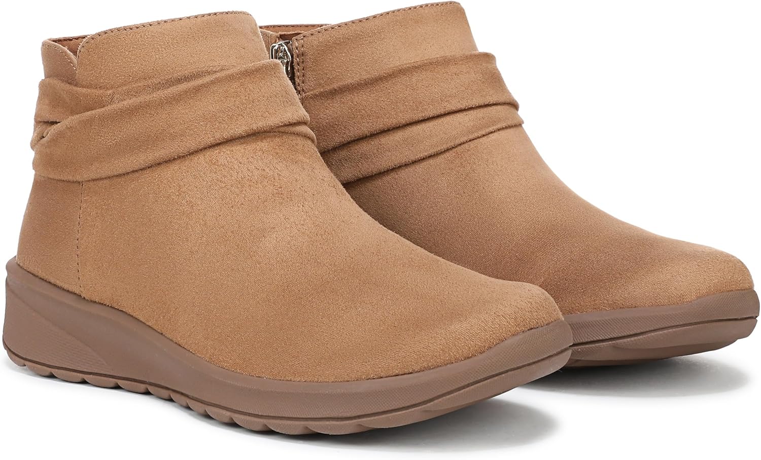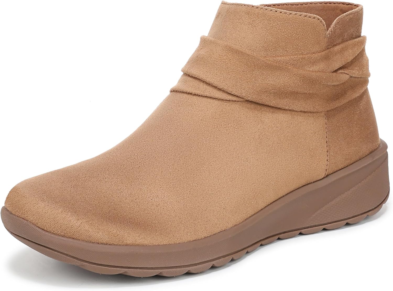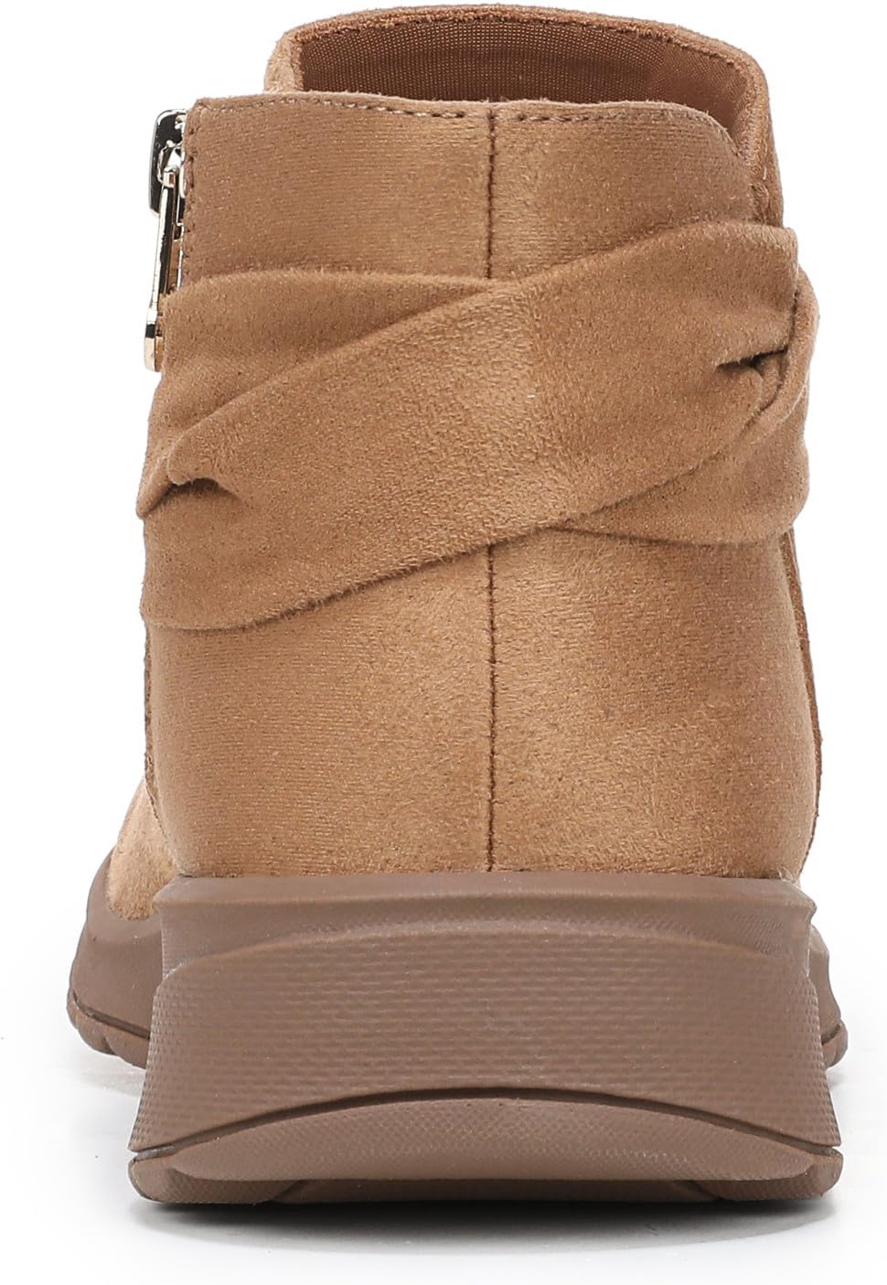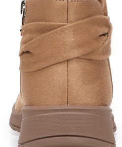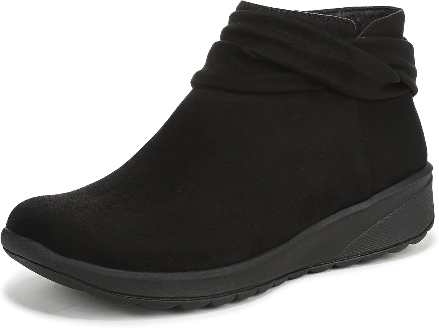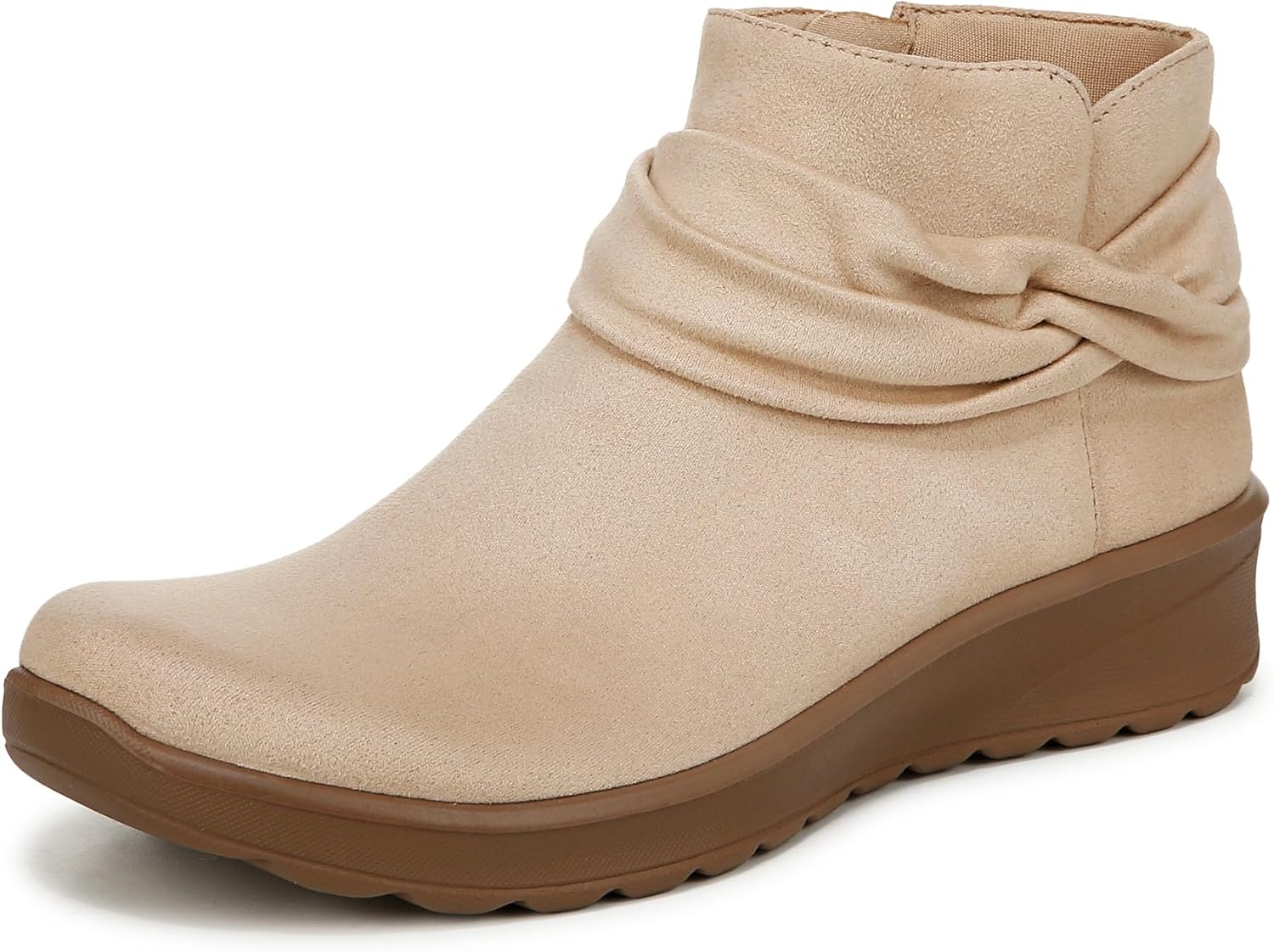 Very comfortable and stable boots that feel like suede and have a cute wrap effect around the ankle; they go with almost any casual outfit.