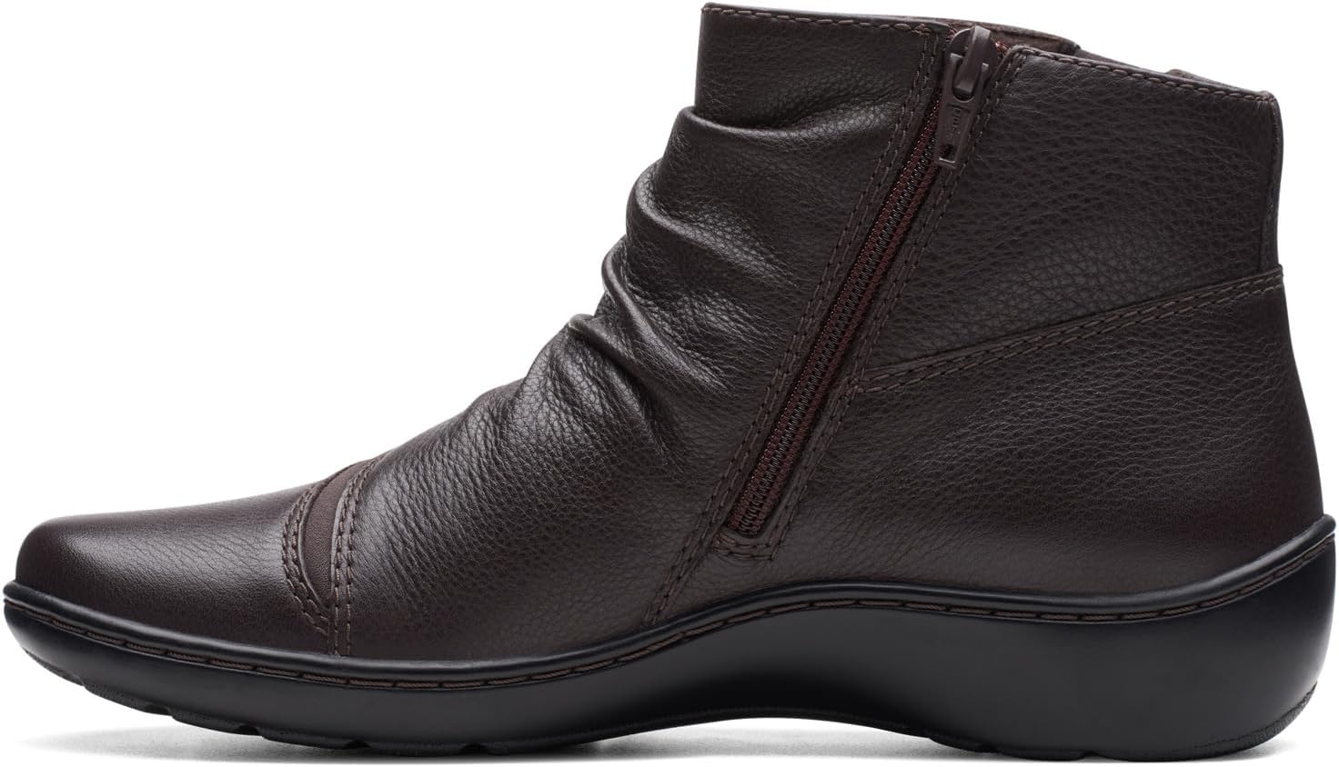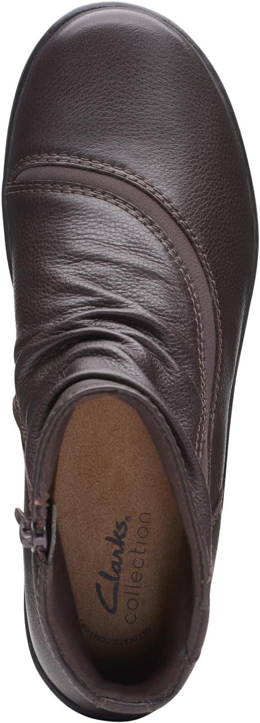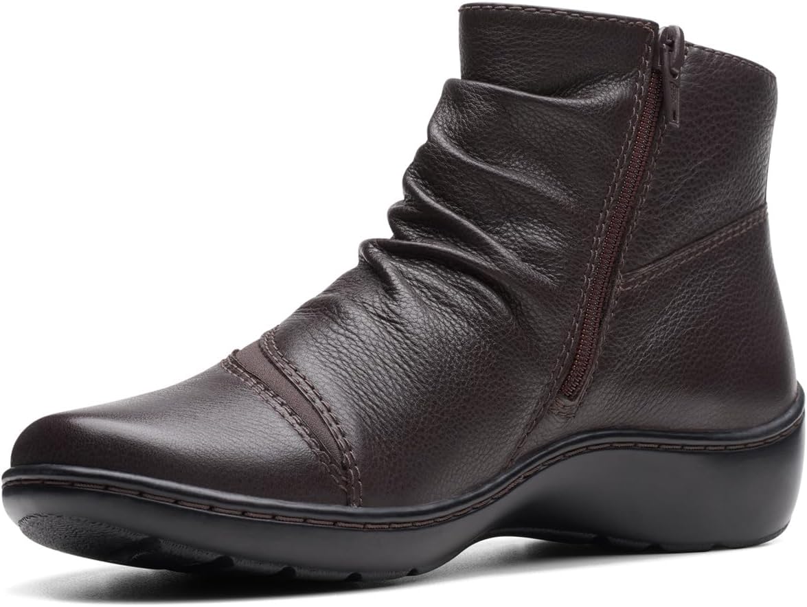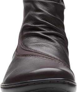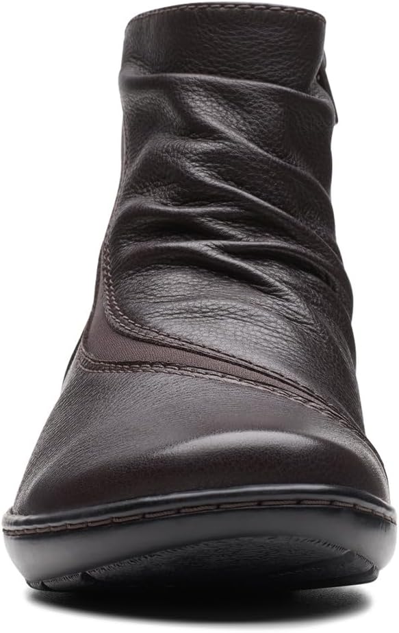 - With rich dark brown leather uppers and subtle ruched detailing, our Clarks Collection Cora Derby boot elevates your everyday casual looks