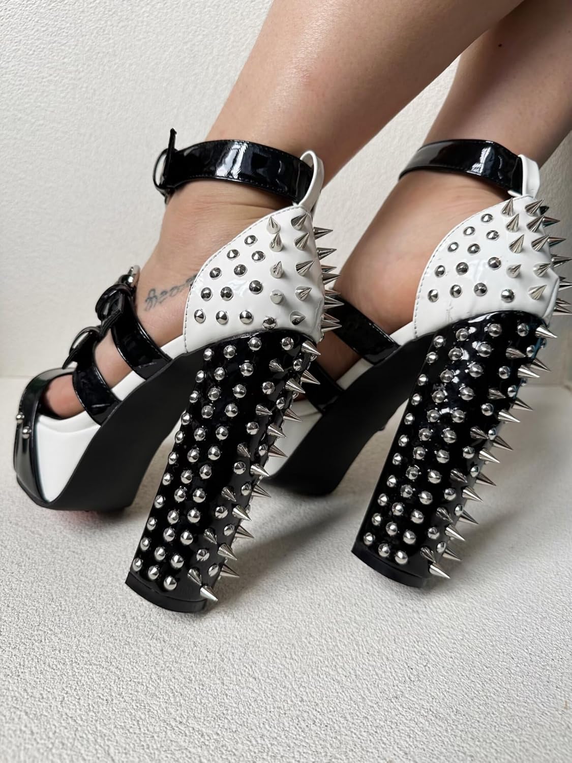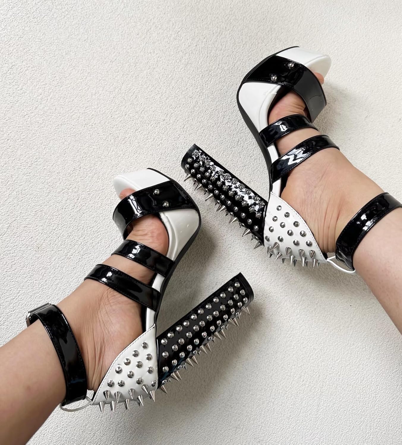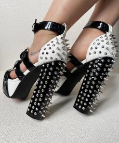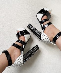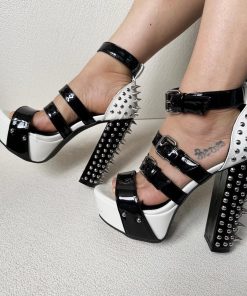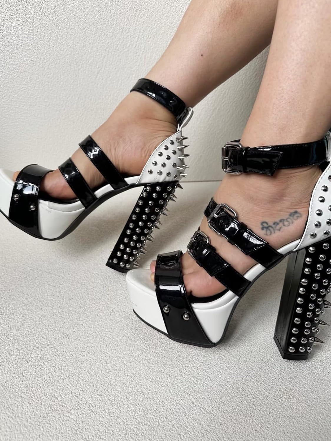 - Design: The sexy shoe name is Black White Rivets Platform Chunky. This platform chunky summer sandals is classic red color and stylish sexy cut create a special style.