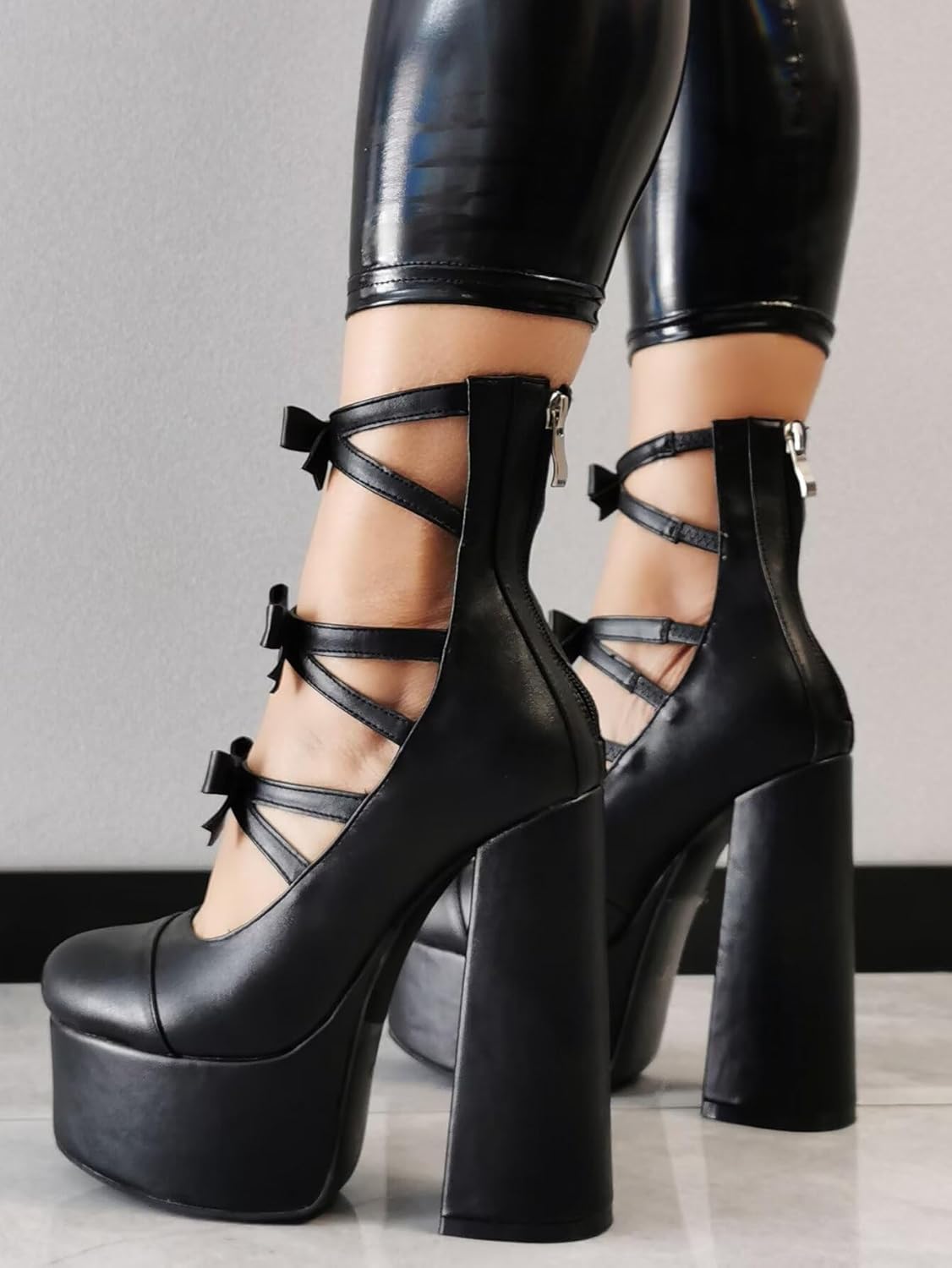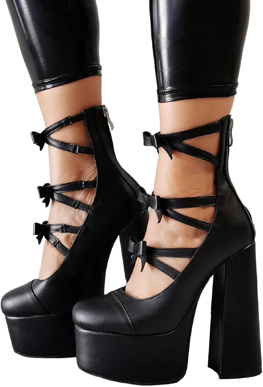 Stylish and well-made, these platform ankle boots feature a sturdy chunky heel and a glossy patent finish that holds up nicely. The bow strap adds a playful touch, the fit runs true to size, and they offer decent support for everyday wear. A solid choice for anyone seeking a bold, Lolita-goth inspired shoe.