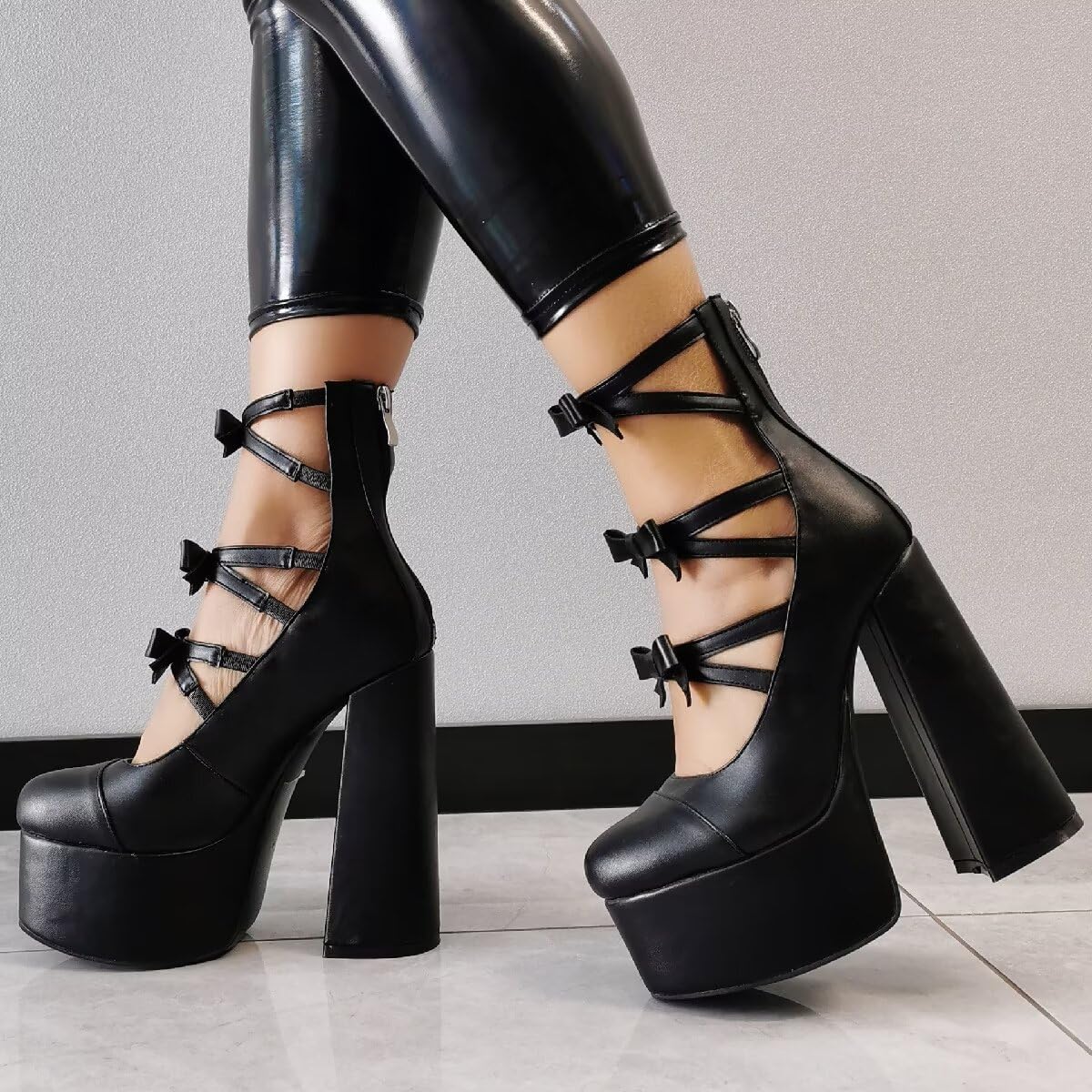 - Design: The shoe name is Black Lolli. This summer platform boot use 3 layer strap with bow element, so the hollow can be more cool and embellish your leg slim. Sweet as tasting your favorite flavor lollipop