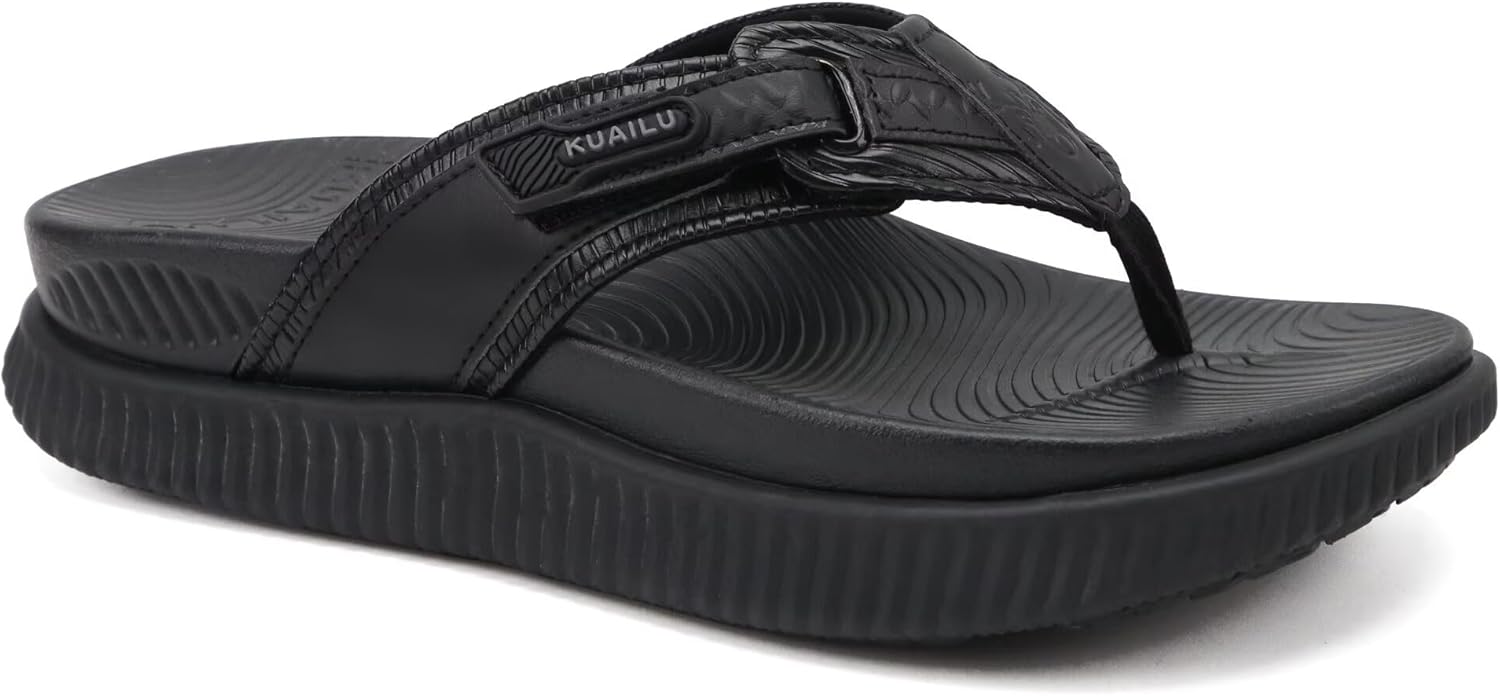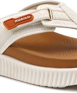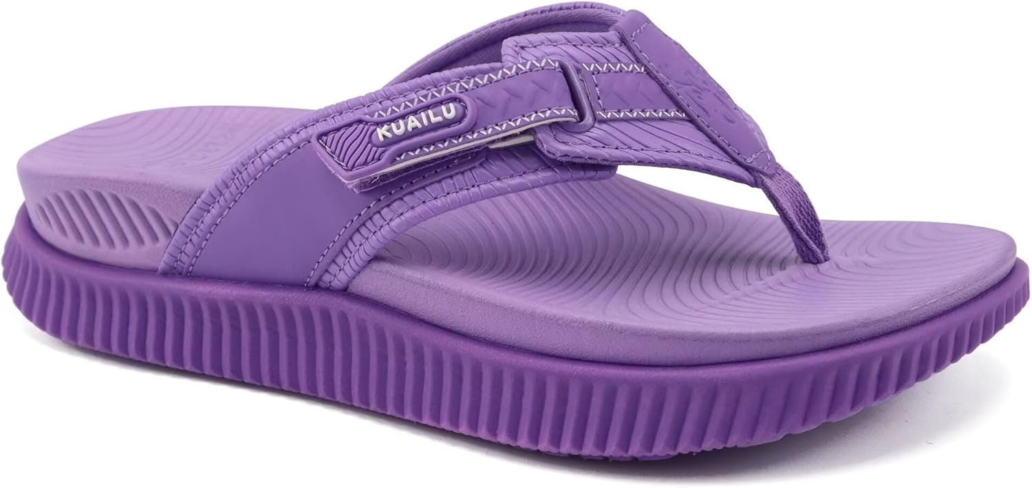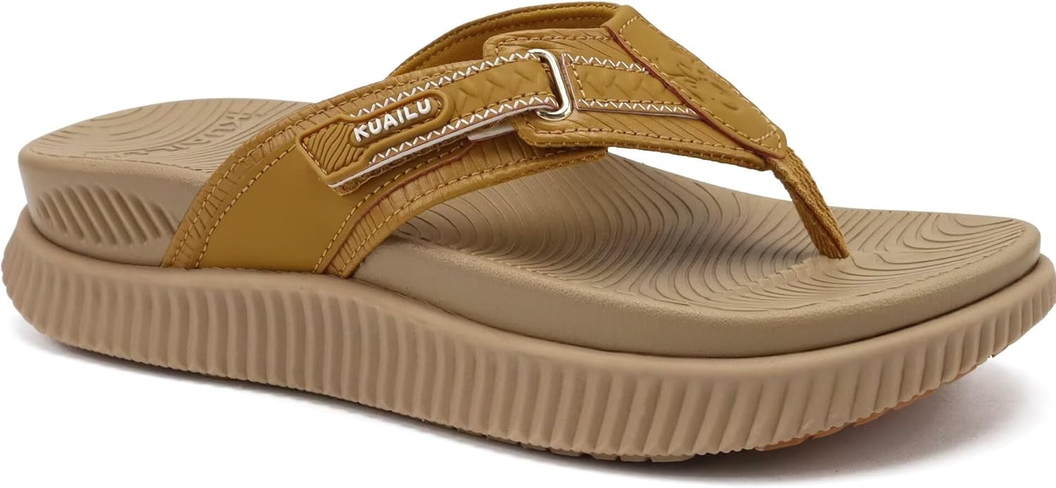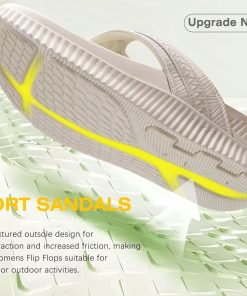 - FASHION WOMENS FLIP FLOPS are sport and casual style. Womens Sandals open toe design keep your feet cool in summer. T-Strap is made of skin-friendly toe post and breathable fabric lining, easy to clean and quick-dry. Premium ortho arches thick cushion serve walking on cloud comfort.