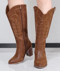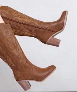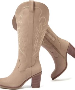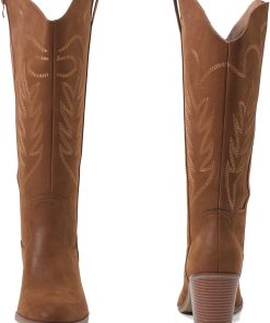 These are a true wide-calf boot — at 17-18 inch calves they fit easily over jeans but the opening isn’t so big it looks ridiculous with shorts or dresses. They’re comfortable for everyday wear, though I recommend padded insoles for long periods; after a long concert walk and standing my feet ached. They held up well in gravel and grass and feel like good quality, and I love having actual knee-high cowboy boots for western events.