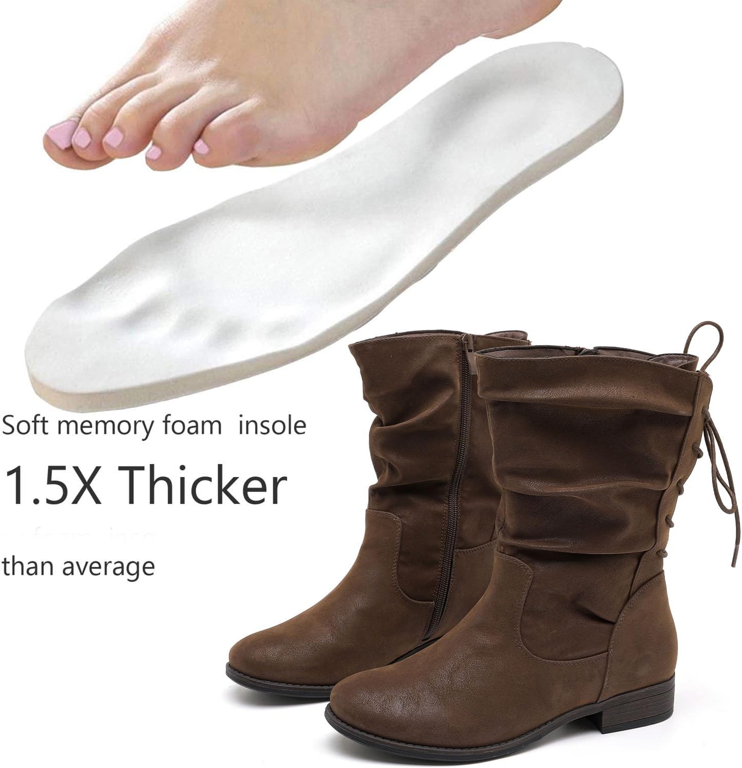 - HIGH-DENSITY MEMORY FOAM INSOLE: high-density memory foam.Surprisingly comfortable.