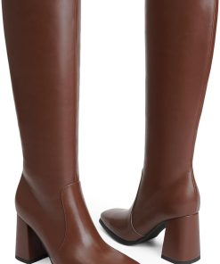- [Square Toe Knee High Boots]:Womens Knee High Boots are made of high quality pu leather,comfortable lining and durable sole, modern square toe and comfortable chunky heels design.