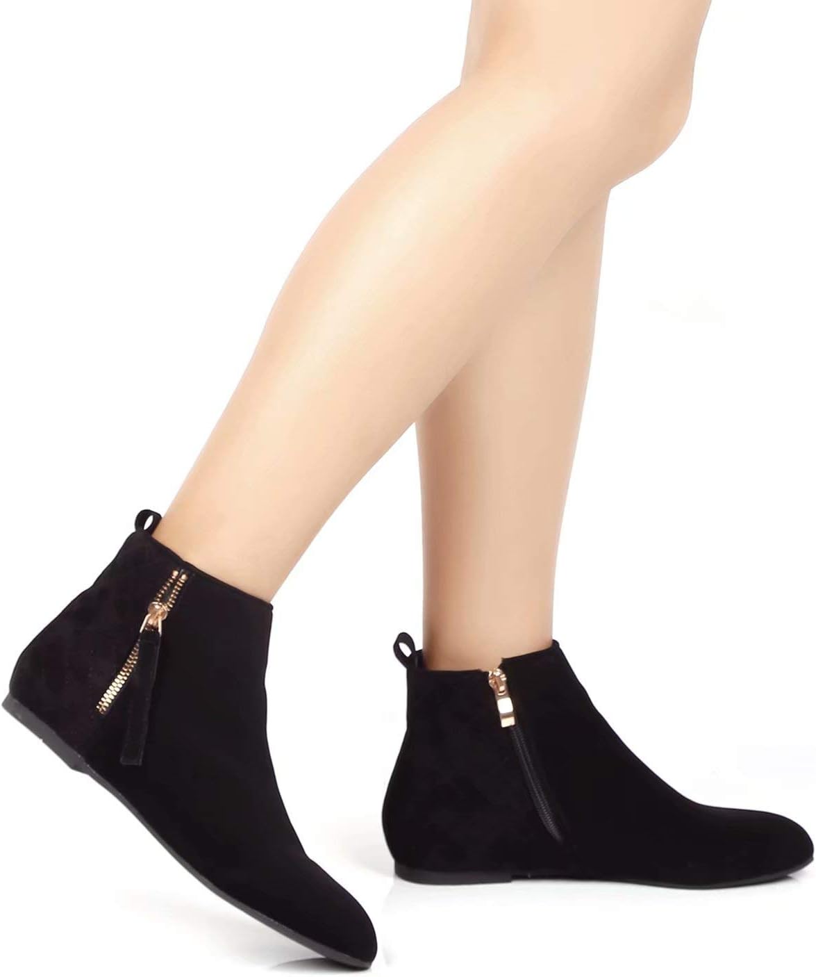 MaxMuxun Women’s Ankle Boots Flat Low Heel Zipper/Chelsea Booties Winter Fall Fashion Boots